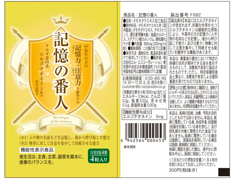 ဂျပန်၏ LS ကော်ပိုရေးရှင်းမှထုတ်လွှင့်သော Ergotioneine ဖြည့်စွက်ချက်သည်လူလတ်ပိုင်းနှင့်သက်ကြီးရွယ်အိုများကိုမှတ်ဉာဏ်ကျဆင်းမှုကိုဖြေရှင်းရန်ဒီဇိုင်းပြုလုပ်ထားသောထုတ်ကုန်တစ်ခုဖြစ်သည်။